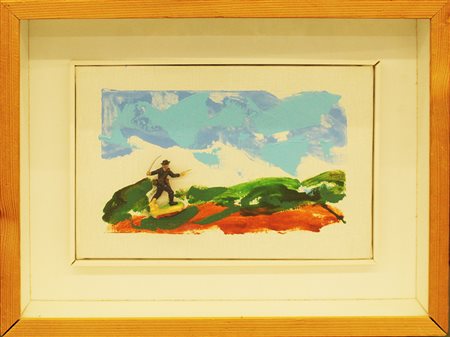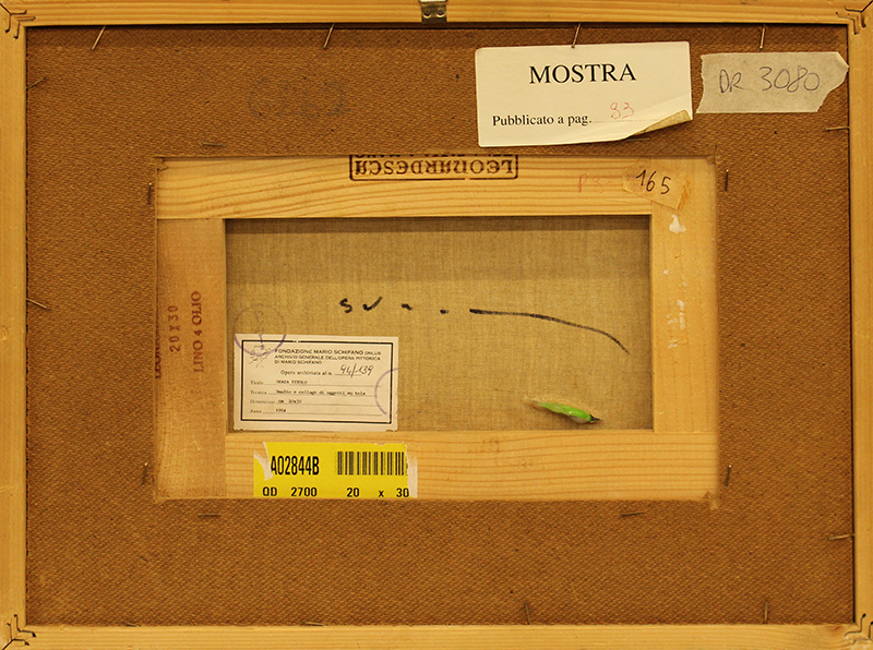 MARIO SCHIFANO, 1994, smalto e collage di oggetti su tela, cm 20x30, con cornice 33x43x8 cm, 4 kg. Al verso: firma, etichetta in alto con scritto "mostra pubblicata a pag 93", etichetta della Fondazione Mario Schifano con timbri. Opera archiviata dalla Fondazione Mario Schifano al n°94/139 in data 30 luglio 1998. Opera con certificato di provenienza della Galleria Daliano Ribani Arte. Opera con cornice