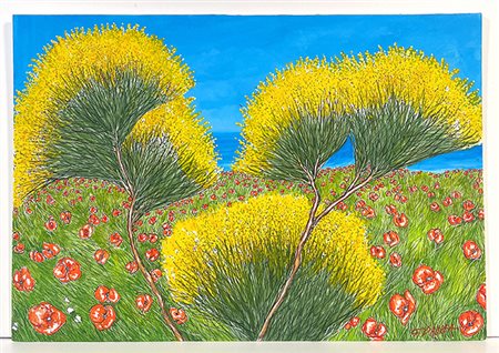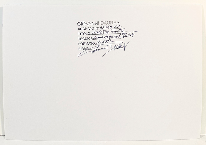 DAUREA GIOVANNI "Ginestre Fiorite" china acrilico su poliplat Opera archiviata GD049CR Titolo, firma numero di archiviazione e dimensione a retro, 35x51 cm