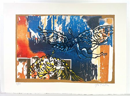 ROTELLA MIMMO "L'Angelo Cattivo" Tecnica: Serigrafia polimaterica su carta Moulin du Guè da 320 grammi Misura: cm 80x60 Tiratura: opera realizzata in 100 esemplari da 1 a 100 più venti numeri Romani. Opera numerata in basso a sinistra Opera firmata in basso a destra La Stampa è stata realizzata da Alberto Serighelli, Arte 3, Milano nel settembre 2000. L'opera è accompagnata da certificato di autenticità della galleria "La Spirale" di Milano