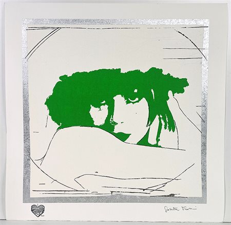 FIORONI GIOSETTA "Doppio Liberty" Verde Luminoso Serigrafia materica con pigmento Verde luminoso.Applicazione di carta velina e foglio argento realizzata a mano.Opera su carta Pescia in cotone da 350 grammi, formato 50x50 realizzata in 125 esemplari per tutto il mondo, dei quali 100 numerati da 1/100 a 100/100 in numeri arabi, 25 numerati da I/XXV a XXV/XXV in numeri romani e alcune P.A. per l'artista.Firma in basso a destra Numerazione in basso a sinistraL'opera è stata realizzata in occasione del 50° anniversario di Spirale Milano Editore