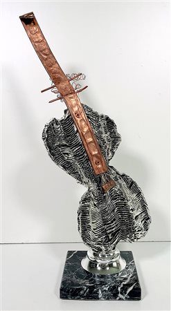 M'HORO Multiplo: scultura in resina epossidica placcata in argento. L’artista ha realizzato e innestato, su ciascun violino, il manico in rame, le corde e il ponticello, cm 43x16x15 Ogni esemplare è registrato nell’archivio ufficiale degli “original multiples” Firma e numerazione incisa sul manico Numerata a mano in alto e sotto la basa Tiratura 99 numeri arabi + 25 numeri romani + 15 P.d’A. Opera registrata presso l’archivio delle opere multiple di M’HORO’ come riportato sul certificato di autenticità. Autentica dell'artista su fotografia