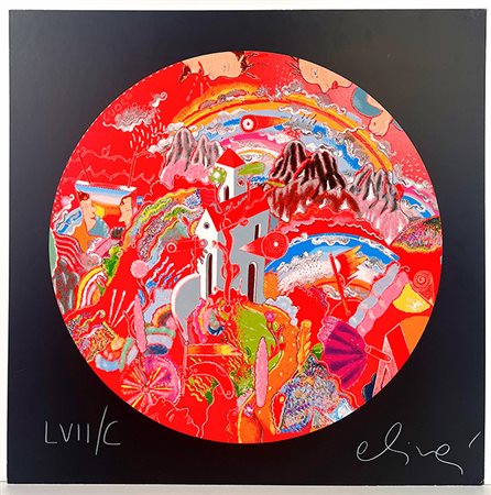 ALINARI LUCA "Dentro l'omino di burro" Serigrafia polimaterica a 35 passaggi di colore su cartone Scholler cm 70x70 il cartone - diametro cm 57,5 il tondo Tiratura 200 numeri arabi, 100 numeri romani, 25 p.a. Opera numerata in basso a sinistra e firmata in basso a destra Certificato di autenticità a retro dell'opera
