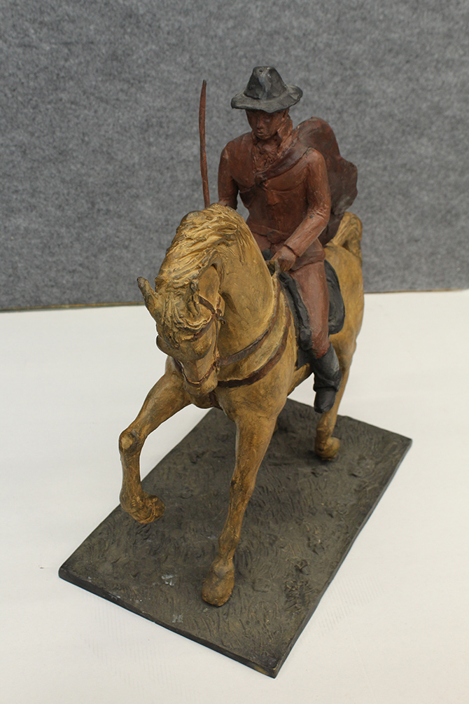 GIOVAN FRANCESCO GONZAGA, "Il Buttero", anni '70, scultura in bronzo dipinto, cm 44x44x23, esemplare XVI/XXV. Alla base: firma al fronte della base ed esemplare dall'altra parte della base.