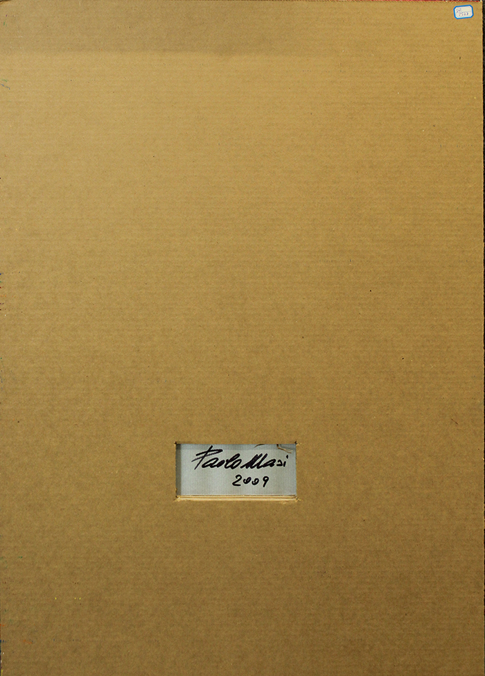 PAOLO MASI "Senza Titolo", 2009, tecnica mista su cartone ondulato spessorato, cm 100x70 kg 1,70. Non ha la teca in plexiglass. Al verso firma e anno in basso centrale. Opera con autentica su foto dell' artista e certificato di provenienza della galleria Daliani Ribani Arte.