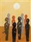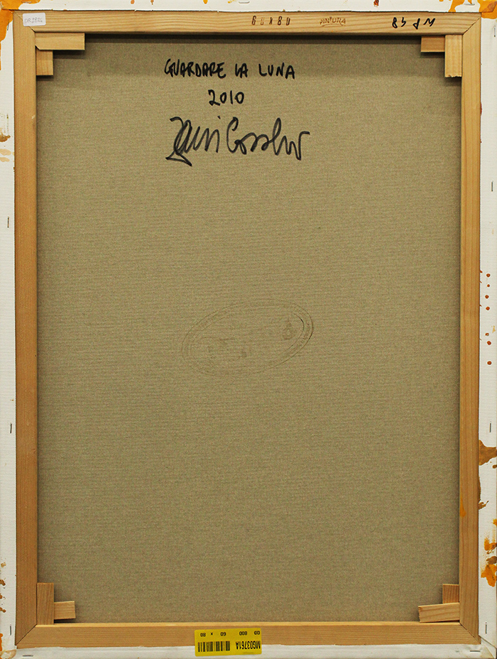 CORRADO ZANI, "Guardare la luna", 2010, tecnica mista su tela, dim 80x60. Al fronte: firma in basso al centro. Al verso: titolo, anno, firma, timbro in alto al centro.