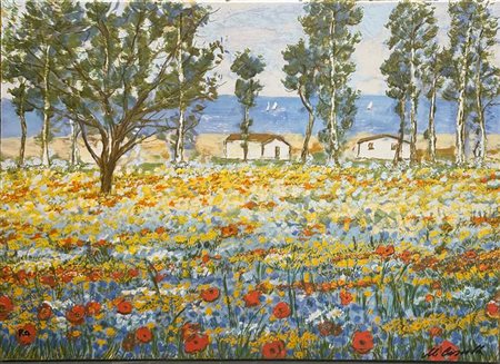 Michele Cascella, "Podere a Ortona", anno 1984, Serigrafia e litografia a 34 passaggi di colore, tiratura 300 esemplari in numeri romani +C numeri arabi e alcune prove d'autore, esemplare 296/300.