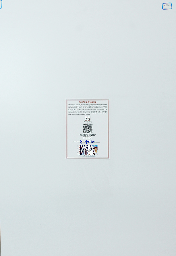 MARIA MURGIA, "Omaggio a Johnny Depp", 2022, fotomosaico digitale montato su pannello Kapafix cm 1 e intagliato a mano, cm 75x50, peso 1 kg. Opera con autentica su foto dell'artista. Al fronte: firma in basso a destra. Al verso: etichetta Certificato di autenticità con firma dell'artista.