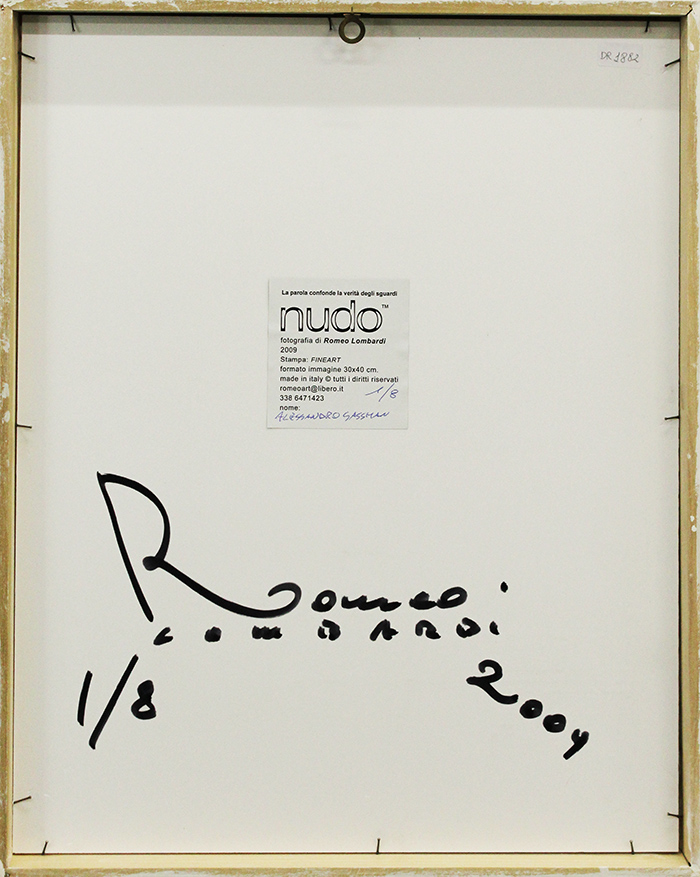 ROMEO LOMBARDI, "Alessandro Gassman", 2009, stampa FineArt 1/8, dim 40x30. Al verso: firma, tiratura, anno in basso al centro, etichetta al centro con informazioni. Opera con cornice.
