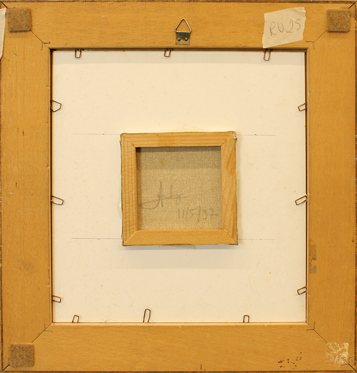 BARBER, "Ritratto", 1997, tecnica mista su tela, 10x10 cm, con cornice 33,5x31,5x3 cm, peso 1 kg. Al fronte: firma in basso a sinistra. Al verso: firma e anno. Opera con certificato di provenienza della Daliano Ribani Arte. Opera con cornice in omaggio.