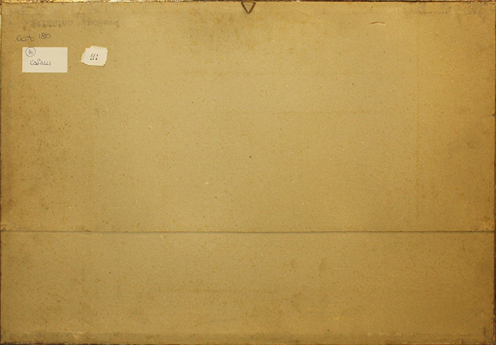 CAPELLI, "Bruntino-Bergamo", anni '80, tecnica mista su cartoncino, cm 30x47, con cornice 40x58x3 cm, peso 2 kg. Al fronte: firma in basso a destra. Al verso: titolo, firma in alto. Sul passpartout presenta fioritura dovuta al tempo.