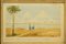 ANONIMO, "Paese Egiziano con le Piramidi di Ghiseh", Cairo, 1933, acquarello su cartoncino, cm 25x42, con cornice 36x51x2, peso 1 kg. Al fronte: in basso titolo, anno, luogo di esecuzione. Opera con cornice.