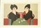 FABIO DE POLI, "I giocatori di carte", litografia su cartoncino, cm 70x100. Al fronte: in basso a sinistra tiratura PDA, in basso a destra firma. Opera senza cornice.