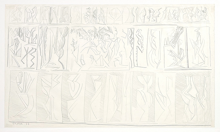 LICATA RICCARDO, Senza Titolo, matita su carta sottile, anno 1973, opera registrata presso l'archivio delle opere di Riccardo Licata rep. Nr. 087/025. Certificato di archiviazione e autenticità su fotografia a cura dell' Archivio Generale delle opere di Riccardo Licata - Studio d'arte G.R. Sacile (PN), 38x65 cm