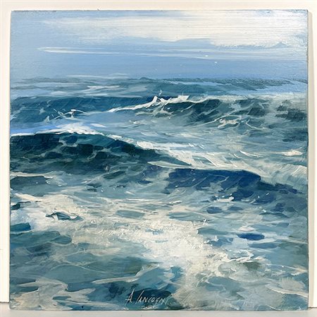 CANCOGNI AGOSTINO, "Mareggiata" olio su tavola, titolo firma e timbro"Opera originale da me dipinta Agostino Cancogni" a retro, 30x30 cm