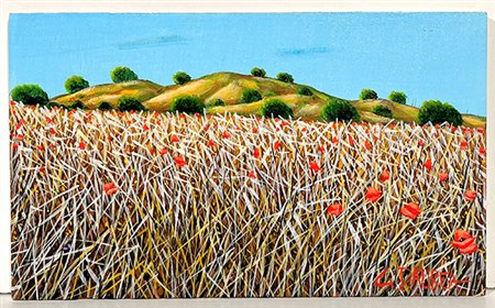 DAUREA GIOVANNI, "Estate" olio su tavola anno 2018, archivio GDS/4/SCR, Titolo tecnica dimensione n°archivio e firma a retro, 15x25 cm