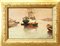 CARLO DOMENICI, "Veliero alla Fonda", anni '50, olio su faesite, 35x50 cm, con cornice 53x67x6 cm, 3,35 kg. Al fronte: firma in basso a destra. Al verso: Etichetta Collezione Ranieri Giannecchini con timbri in alto a sinistra, titolo in alto. Opera con cornice.