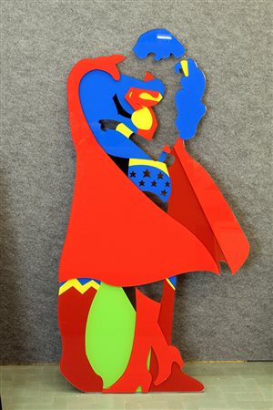 MARCO LODOLA, "Intestellar Kiss", anni 2000, serigrafia su plexiglass a 20 passaggi di colori, cm 130x67x1, 5 kg. Al verso: firma e tiratura 7/50. Opera pubblicata su Edizione Arte Pentagono di Marco Lodola pag 2 a sinistra. L'opera non necessita cornice.