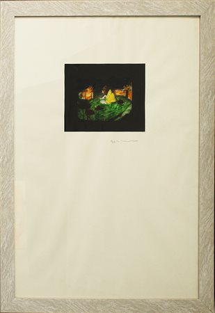 MARIO SCHIFANO, prima metà anni '70, tecnica mista su cartoncino, dim 100x70. Opera archiviata dall'Archivio Fondazione M.S. Studio al N°PM70/707 in data 05 novembre 2018. Al fronte: firma al centro. Al verso: in alto a destra etichetta Archivio Fondazione M.S. Studio: nome autore, numero d'archivio, tecnica, dimensioni, anno. Opera con cornice.