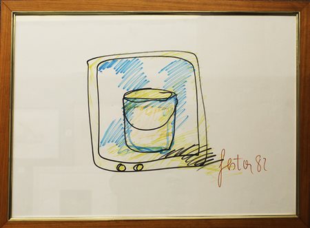 TANO FESTA, 1982, pennarelli su cartoncino, dim. 50x70 cm. Opera archiviata dall'archivio Anita Festa. Al verso: certificato di autenticità