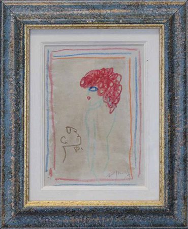 FRANCO ROGNONI, Anni '80, Tecnica mista su cartonicno intelato, Dim. 30x21, con cornice cm 47x38,5x5, kg 1,5. Al fronte: firmato in basso a destra, Opera con cornice