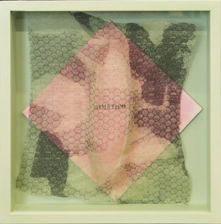 THEO GALLINO, "Mimetico", 2015, tecnica mista, cm 39x39, peso 2,80 kg, opera archiviata al n°725. Al verso: timbro Galleria Colomba Art Design. Opera protetta da teca in plexiglass.