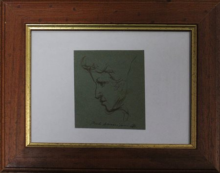 PIETRO ANNIGONI, Disegno su cartoncino, Dim 9x7, firmata in basso al centro, autentica su foto artista