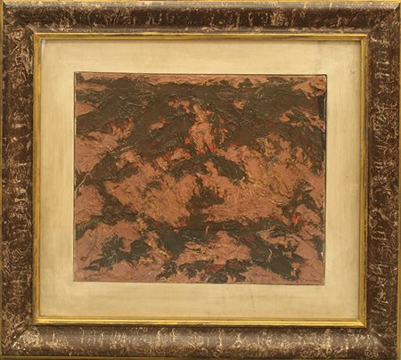 BRUNO PULGA, "Pittura 69", 1969, olio su tela, cm 45x55 con cornice 80x88x4 kg 9 opera con autentica. Al fronte: firma in basso a destra. Al verso: in alto al centro titolo due volte, firma e il luogo di esecuzione: Parigi. Certificato di provenienza della Daliano Ribani Arte. Opera con cornice in omaggio.