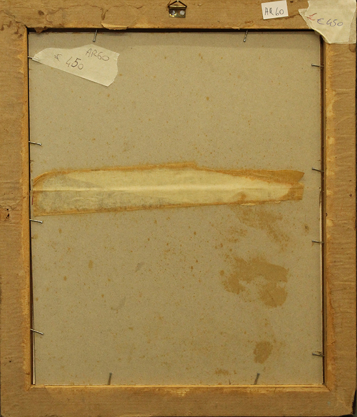BRUNO SAETTI, anni 40, disegno su cartoncino, cm 13x10 con cornice in omaggio 36,5x31x2,5 kg 1 . Al fronte: firma in basso a destra. L'opera presenta leggera fioritura. Certificato di provenienza della Daliano Ribani Arte. Opera con cornice in omaggio.