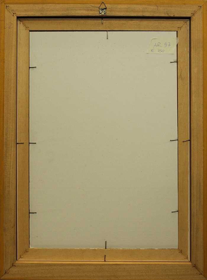 LUPO RENZO, 1986, "Figura", tecnica mista su cartoncino, cm 50x35 con cornice in omaggio 64x49x3,5 kg 3. Al fronte :firma e anno in basso a destra. Certificato di provenienza della Daliano Ribani Arte. Opera con cornice in omaggio.