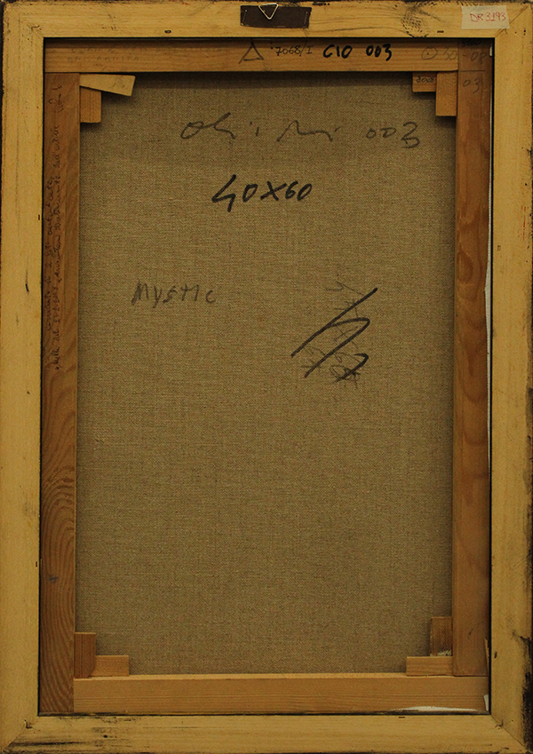 OLIVIERI CLAUDIO "Mystic" , 2003, olio su tela , cm 60x40 con cornice 62,5x42x3 kg 1,5 . Al verso: titolo, firma , anno, misure. Opera con cornice e con autentica e certificato di provenienza della galleria Daliano Ribani Arte