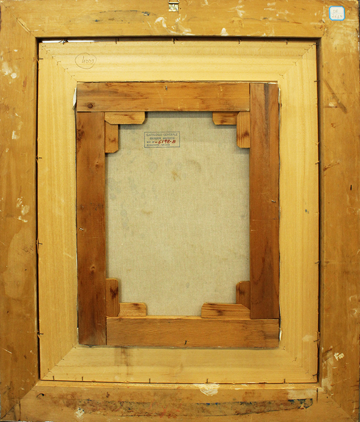 GIUSEPPE MIGNECO, "Barcaiolo", 1980 circa, olio su tela, dim cm 45x35, con cornice cm 74x64x4, peso 5 kg. Opera con autentica su foto dell'artista e timbro pubblicazione sul Catalogo Generale al N°6/98-B Milano. Al fronte: firma in basso a destra. Al verso: timbro pubblicazione sul Catalogo Generale in alto a sinistra. Opera con cornice.