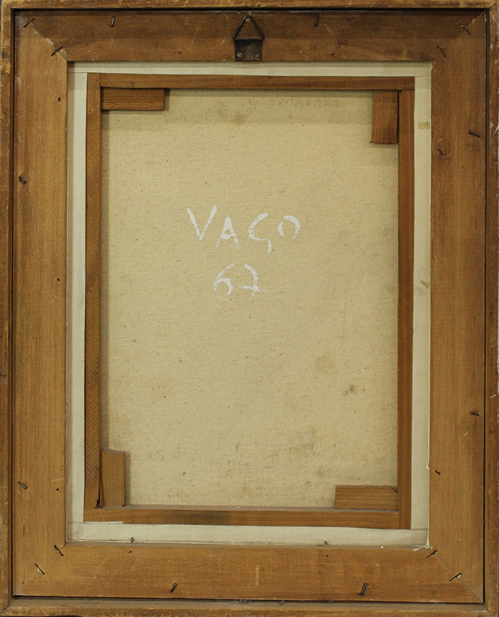 VALENTINO VAGO, 1967, olio su tela, 40x30 cm, 47x37x5 cm, 1,80 kg. Al verso: firma e anno al centro. Opera con cornice.