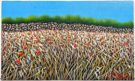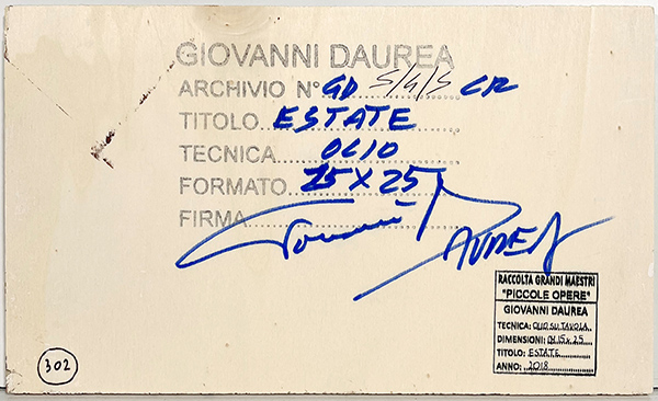 DAUREA GIOVANNI "ESTATE" olio su tavola, n°archivio GDS/4/S CR, timbro titolo tecnica dimensione 15x25 cm .n° di archivio e firma a retro, autentica dell'artista su fotografia