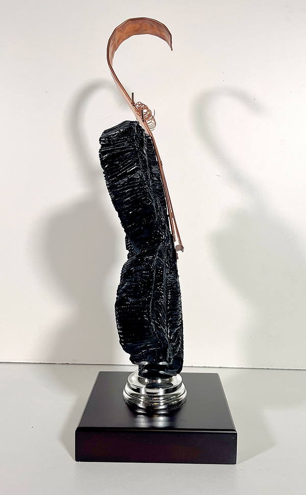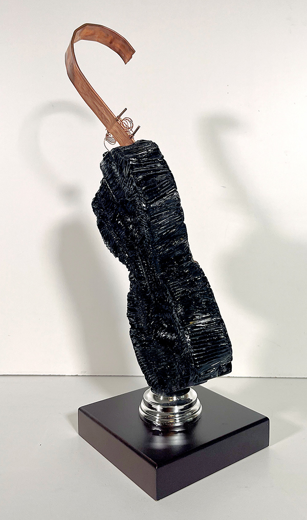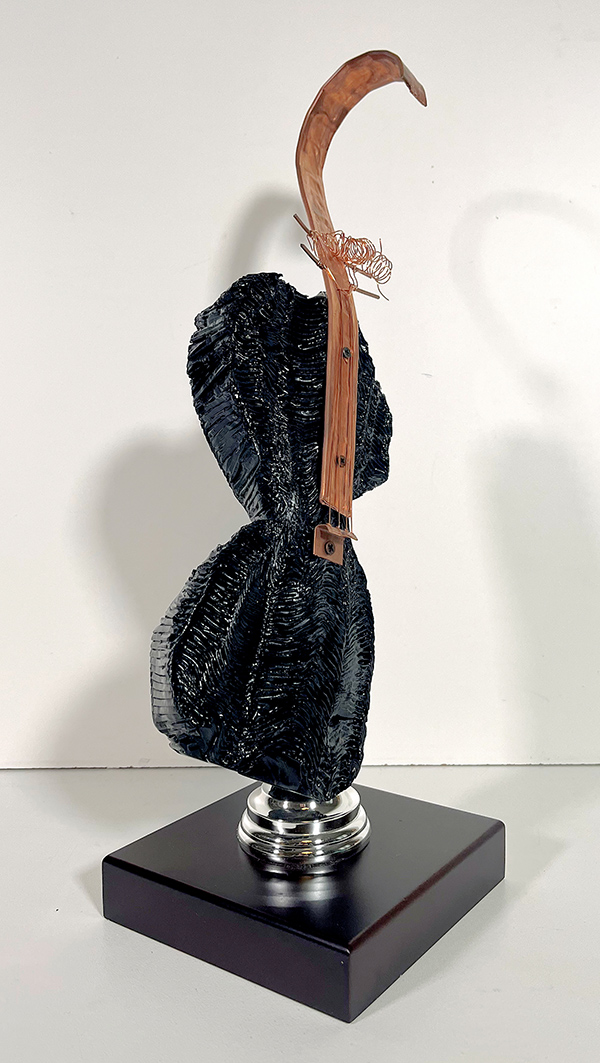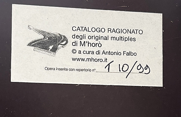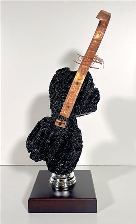 M'HORO' Multiplo: scultura in resina epossidica placcata in argento. L’artista ha realizzato e innestato, su ciascun violino, il manico in rame, le corde e il ponticello. Ogni esemplare è registrato nell’archivio ufficiale degli “original multiples” Firma e numerazione incisa sul manico Numerata a mano in alto e sotto la basa Tiratura 99 numeri arabi + 25 numeri romani + 15 P.d’A. Opera registrata presso l’archivio delle opere multiple di M’HORO’ come riportato sul certificato di autenticità. h43x16x15 cm