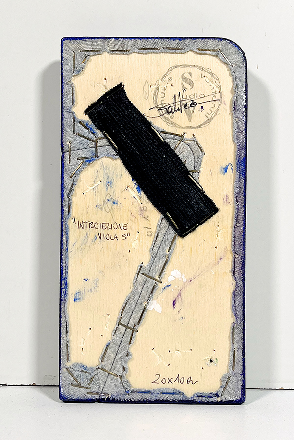VENTANNI SAMUELE "Introiezione viole S", acrilico su tela lavorata, titolo dimensione timbro e firma a retro 20x10 cm