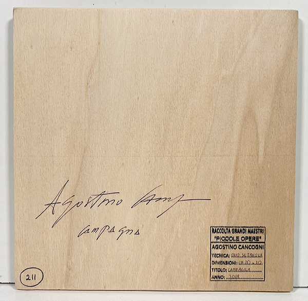 CANCOGNI AGOSTINO "Campagna" anno 2018, olio su tavola, firma e titolo a retro, autentica dell'artista su fotografia 20x20 cm