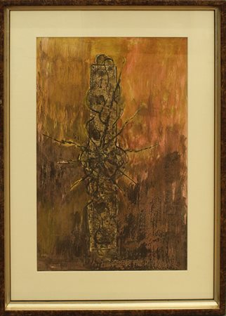 ANDREA RACCAGNI, 1978, tecnica mista su cartoncino, cm 50x35, con cornice 64x50x3 cm, peso 2 kg. Al fronte: firma e anno in basso a sinistra. Opera con certificato di provenienza della Daliano Ribani Arte. Opera con cornice.