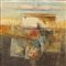 GELINDO CRIVELLARO, "Paesaggio", anni '90, tecnica mista su tavola, 80x80x1 cm, 5 kg. Al fronte: firma in basso al centro. Opera con certificato di provenienza della Daliano Ribani Arte. Opera senza cornice.