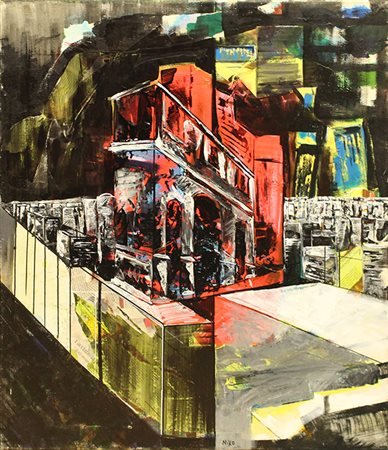 NIKO CANCOGNI, "Rovine", olio su tela, cm 80x70. Al fronte: firma in basso a sinistra. Al verso: titolo e firma. Opera senza cornice
