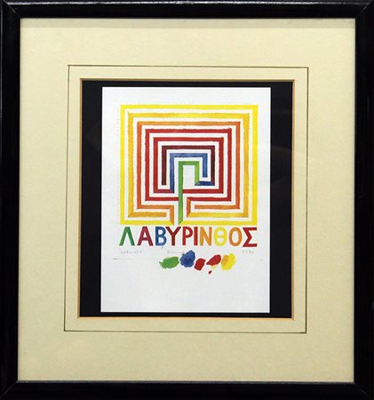 JOE TILSON, "Azzurro", 1976, riproduzione fotolitografica (4 colori offset) dell'opera originale di Joe Tilson, espressamente eseguita per la serie "I colori dell'Arcobaleno" di BolaffiArte, 5000 esemplari numerati da 1 a 5000, riservati al Club dei 5000, recano la firma autografa dell'artista, dim 28x20 cm. Al fronte: anno in basso a destra. Al verso: etichetta con informazioni in alto a destra. Opera con cornice.