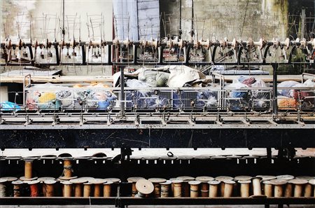 NICOLA BERTOLOTTI, "La fabbrica dei fili rossi", anni 2000, fotografia su dbond, dim 53x80. Al verso: nome autore, titolo, dimensioni.