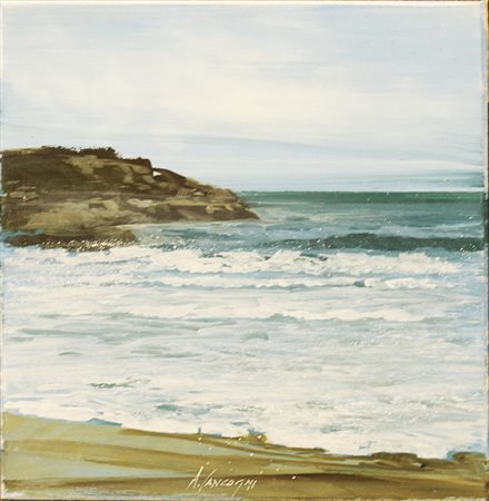 AGOSTINO CAGNOGNI, "Calafuria-Livorno", anni 2000, olio su tavola, cm 30x30x1, peso 0,50 kg. Al fronte: firma in basso al centro. Al verso: firma e titolo a sinistra. Opera con certificato di provenienza della Daliano Ribani Arte. Opera senza cornice.