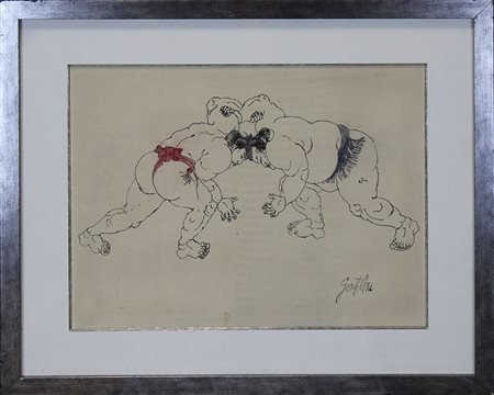 FRANCO GENTILINI, Senza titolo, Tecnica mista su cartoncino, Dim. 42x56, Al fronte: firma in basso a destra, Opera con cornice