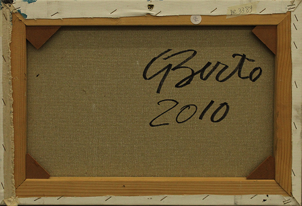 GIAN PAOLO BERTO, 2010, tecnica mista su tela, cm 35x50x2, peso 1 kg. Al verso: firma e anno. Opera con certificato di provenienza della Daliano Ribani Arte. Opera senza cornice