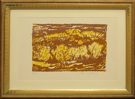 BEPPE GUZZI, anni '60, litografia su cartoncino, esemplare 32/100, cm 50x70, con cornice 61x82x3 cm, 4 kg. Al fronte: firma in basso a destra ed esemplare in basso a sinistra. Opera con certificato di provenienza della Daliano Ribani Arte. Opera con cornice.