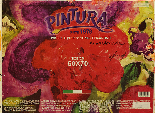 PIERLUIGI DE LUTTI, "Ex ghiacciaio", 2025, olio su cartone telato, cm 50x70x0,5, peso 1 kg. Opera archiviata dall'Archivio Pierluigi De Lutti al N°0190/0CT. Al fronte: firma in basso a destra. Al verso: firma, titolo. Opera con certificato di provenienza della Daliano Ribani Arte. Opera senza cornice.