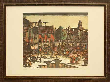 GENNARO PICINNI, anni '80, serigrafia su carta, cm 50x70, con cornice 58x78x1 cm, 4 kg, esemplare 47/99. Al fronte: firma in basso a sinistra ed esemplare in basso a destra. Opera con certificato di provenienza della Daliano Ribani Arte. Opera con cornice.