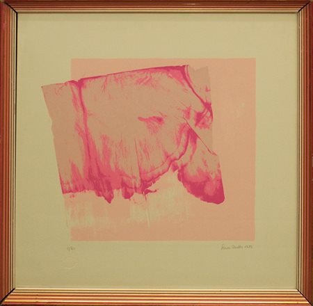 LAURA NOVELLO, 1983, litografia su carta, esemplare 3/70, cm 50x50, con cornice 54x55x3 cm, 2 kg. Al fronte: firma e anno in basso a destra ed esemplare e timbro in basso a sinistra. Opera con certificato di provenienza della Daliano Ribani Arte. Opera con cornice.