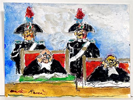 PIACESI WALTER, "La legge". Tecnica mista su cartoncino anno 2021, 24x18 cm, titolo tecnica anno e firma a retro, certificato di provenienza della galleria Allegrini