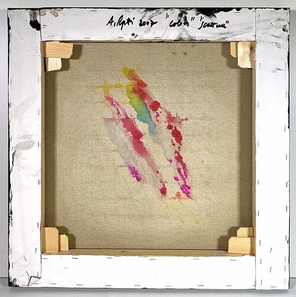 ALFREDO RAPETTI MOGOL, "Colors, scrittura" acrilico su tela, 50x50 cm, anno 2007, autentica dell'artista su fotografia